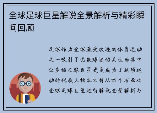 足球作为全球最受欢迎的运动之一,其明星球员不仅在绿茵场上展现出色的竞技能力,同时也以其独特的魅力和颜值吸引着无数粉丝的目光。随着时尚潮流的发展,越来越多的足球明星开始在赛场外展现他们的时尚品味和个人风格,从而引领了一股新的潮流。在这篇文章中,我们将从四个方面详细阐述足球明星如何在颜值巅峰时期展现他们的魅力风采,并对时尚潮流产生深远影响。这四个方面包括:足球明星的形象塑造、时尚品牌代言、社交媒体影响...